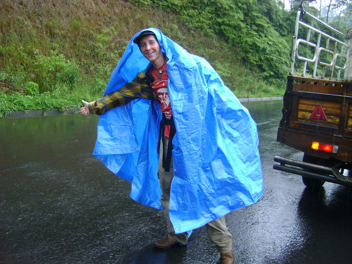 It didn’t work. In fact, I think it was raining even harder now. Well, I didn’t have much of a choice. So I wrapped up my pack in it’s built-in raincoat, whipped out my hobo tarp, and set out.