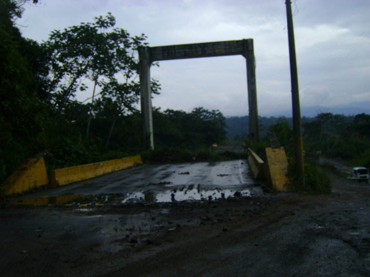 Soon, a truck cruised on by and let me in the back, taking me the hundred-odd kilometers to Macas, where I am now. It was a great ride, through misty, mysterious-looking jungle. At one point, we had to divert onto a small gravel road and over a rickity wooden bridge because the main bridge had been mysteriously obliterated.