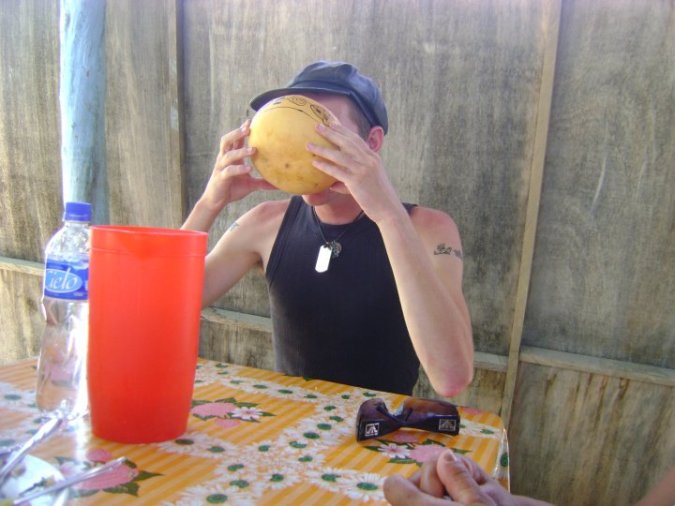 The people in the truck were nice, and bought me some lunch (more fish.) I also drank a strange local wine called chicha that is poured into a bowl, passed around, and sipped. It was quite good.