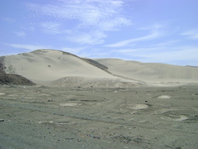 I rode all day to get to Lima, through the most beautiful and the most desolate desert I’ve ever seen. Sand dunes everywhere, miles long and hundreds of meters high, streched into the distance. Barren mountians completely deviod of vegatation rose up out of the earth like scars. I figured that this is probably as close to Mars as I’ll ever get. Literally, no plants whatsoever. Anywhere. Just rocks and sand. I named it the Mars Desert.