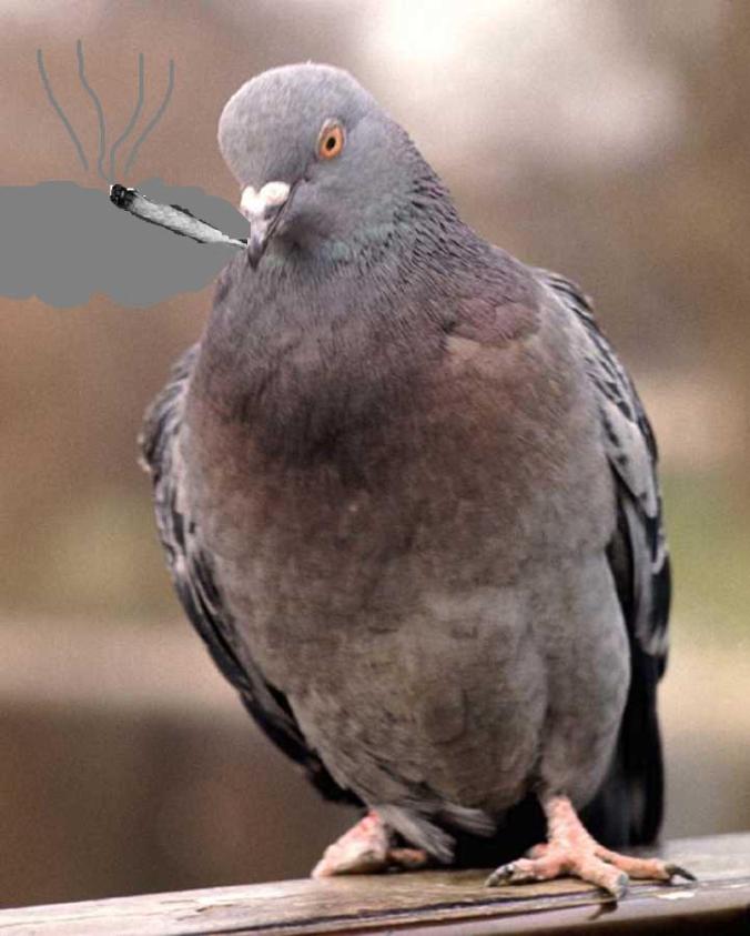 “Hey, the fucking bird, it stole our weed.” observed the Colombian. We stared in silence at the pigeon; seeming to feel eyes upon it, the bird stopped pecking and blinked dully at us.
