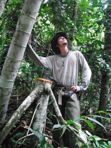 At first the tree hardly moved at all; just a centimeter towards me, and then back in the other direction. The goal here was to get her to fall towards me, where she would hopefully crash all the way down to the forest floor without becoming entangled in the high branches of other trees. If she fell in the other direction life would become very difficult for me, as there were a number of huge, ten-foot wide samaoma trees in the fall path of the balsa.