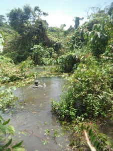 On my walk back to the jungle I deemed the other balsas in the clearing too small to be used for my timber raft, and so headed back to the road in search of other candidates. I followed another mud path that peeled off the road to the south, which came out in a cow pasture about 500 metres downstream from the port. I saw a balsa growing right next to the river, and asked a group of men lounging around nearby on motorcycles if it was all right if I cut it down.