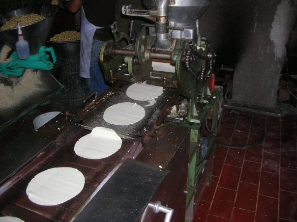 My friend tells me that the machine can make eighty kilograms of tortillas an hour, or about 1,600 tortillas. Damn.