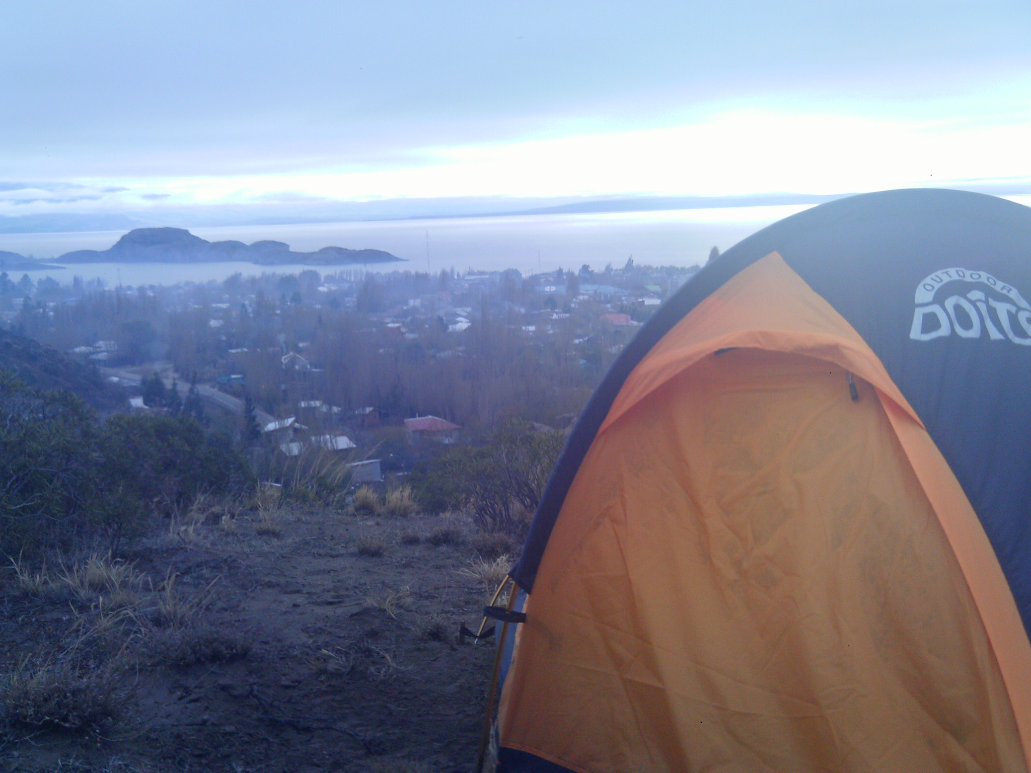 Camping with a tent away from the city – in this case, the mountians around Chile Chico