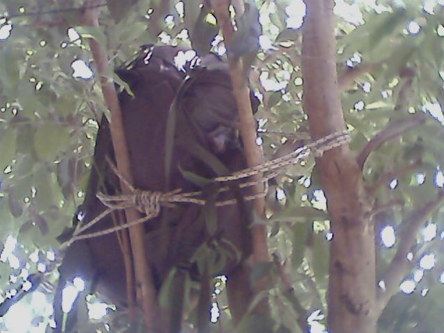 If I am in an especially high-risk area, I also employ the use of hidden ropes, which connect my pack to either the hammock or some sort of precarious object that will make a lot of noise if knocked down. These hidden ropes are usually concealed under dry leaves or litter.