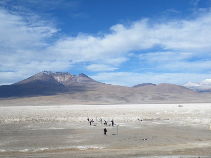 Unsurprisingly we waited all day long, shattering (as I’d predicted) T’s previous record of 45 minutes. But it wasn’t so bad after all; there smack-dab in the middle of nothing somewhere in the North of Chile we sang songs, danced to the music in our head, blabbered on endlessly, and made kites out of plastic bags to throw into the high-altitude wind of the frigid wintertime altiplano. We had “Stones” tournaments and played “I Spy” and took long naps together in the dirt, waving our huge cardboard sign at the once-every-five-hours mining truck that passed us by. All while the big volcano next to us smoked and rumbled and belched, as if amused by our tiny antics down below on its monstrous feet. The long wait went by in what seemed like just a few minutes.