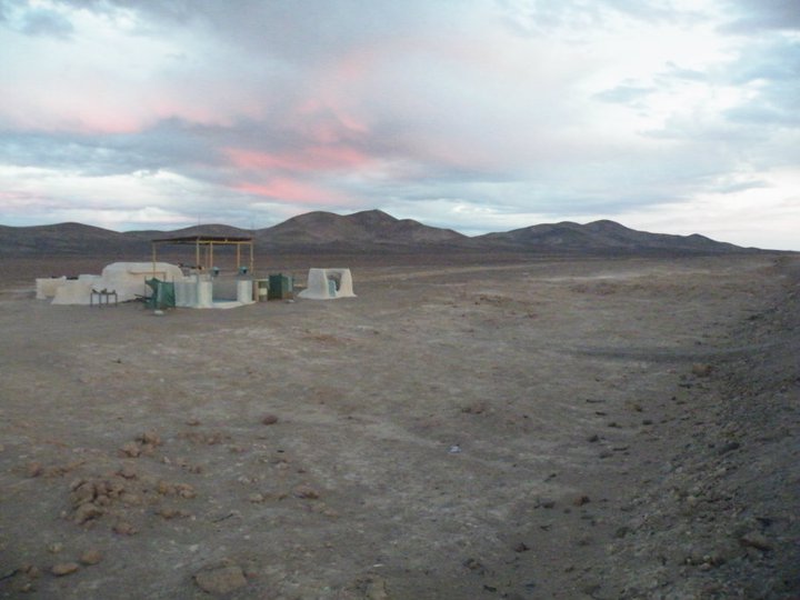 Half an hour later we had a nice little bed consisting of our two sleeping bags and assorted jackets and dirty clothes, all set up on the floor of the ladies’ dressing room. After making a few sandwiches with some bread and ham we’d bought in Copiapó, the two of us sat back on the benches and relaxed.